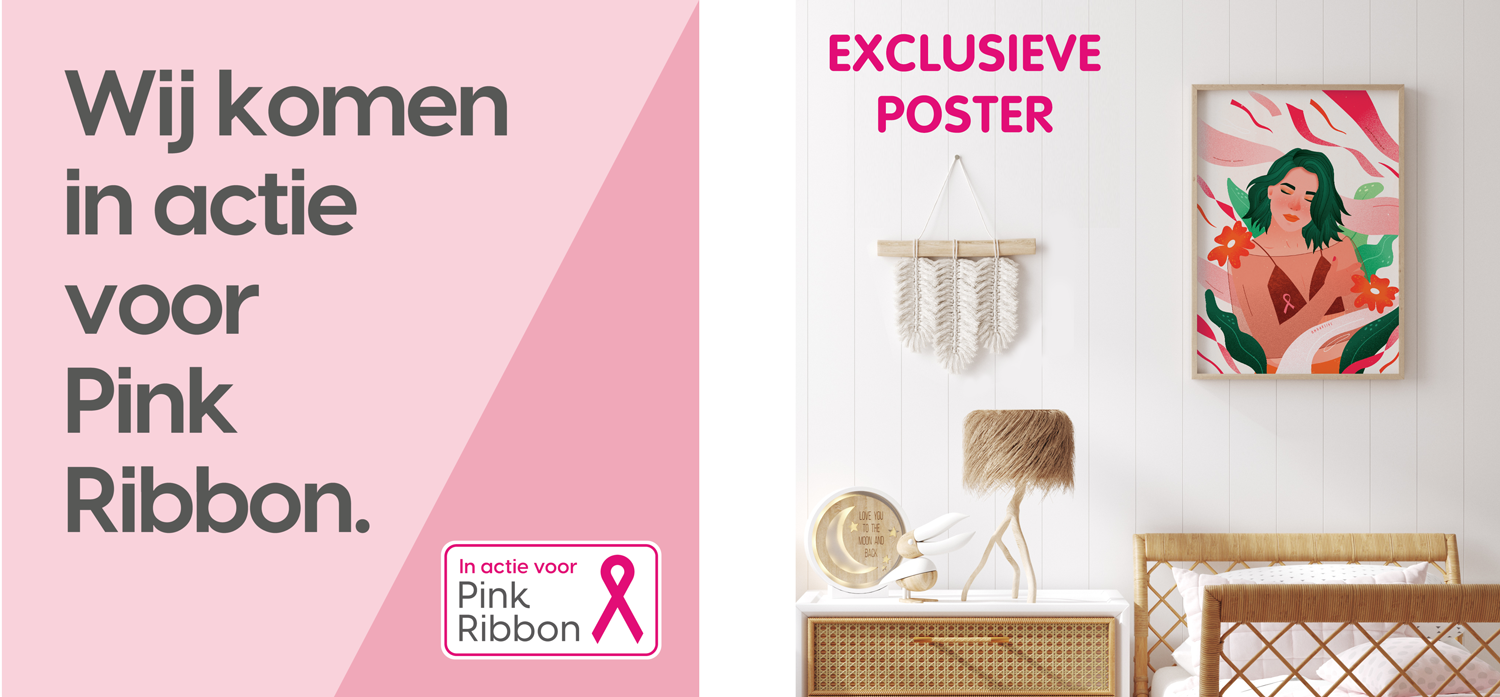 De gehele maand oktober doneren wij van alle verkochte roze en blauwe KipKep-producten €0,50 per verkocht artikel aan Pink Ribbon.