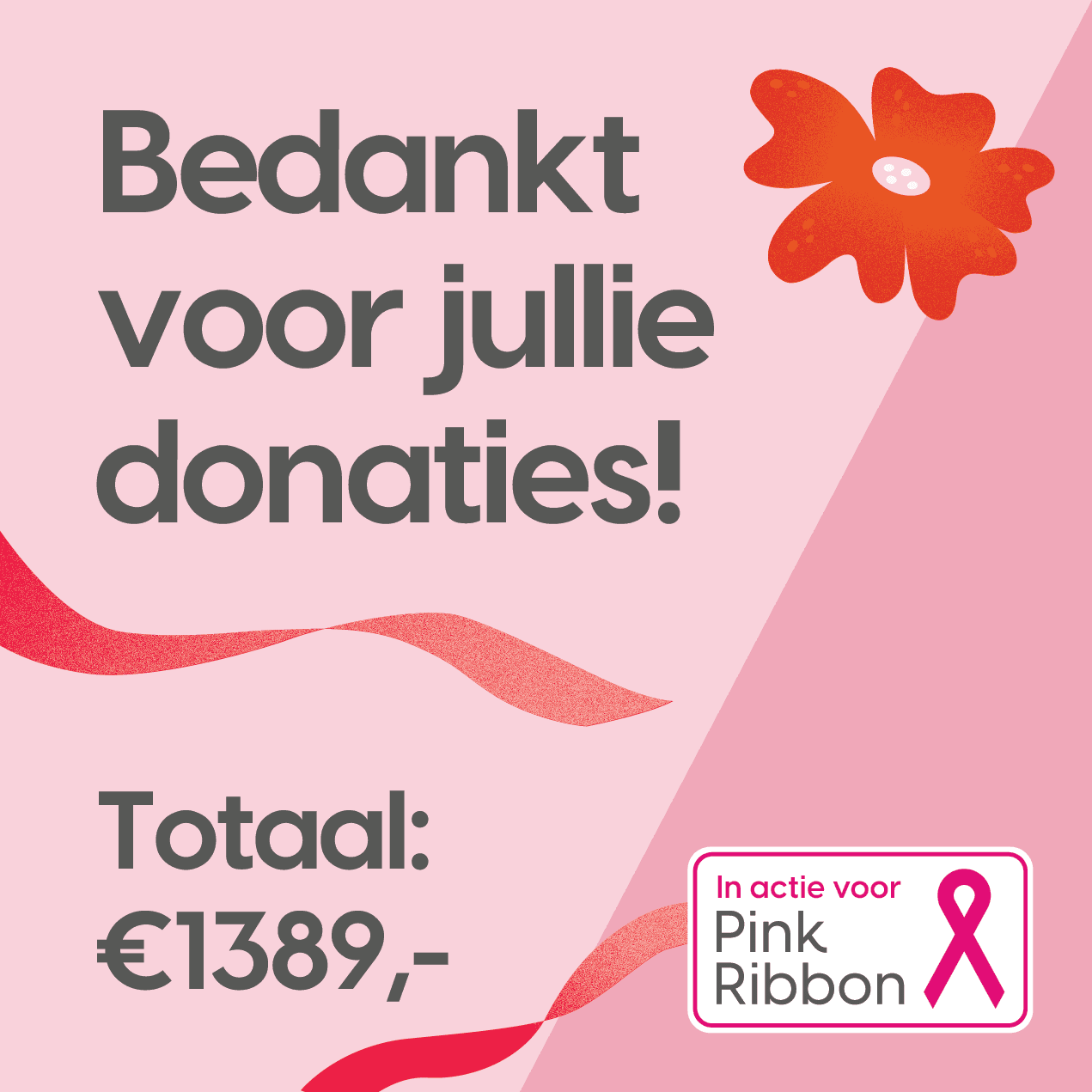 Iedereen bedankt voor jullie bijdrage aan Pink Ribbon en daarmee het onderzoek naar borstkanker te steunen!